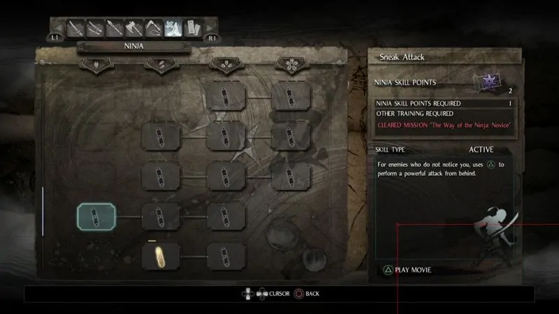 Van egy elég hasznos skill a Ninja ág alatt, amit mindegyik karakterosztállyal használhatsz. Ha játszottál már Souls játékkal, akkor ismerős lesz a mozzanat, ugyanis arról van szó, hogy a háttal álló ellenfél mögé lopózol és hátbaszúrod.