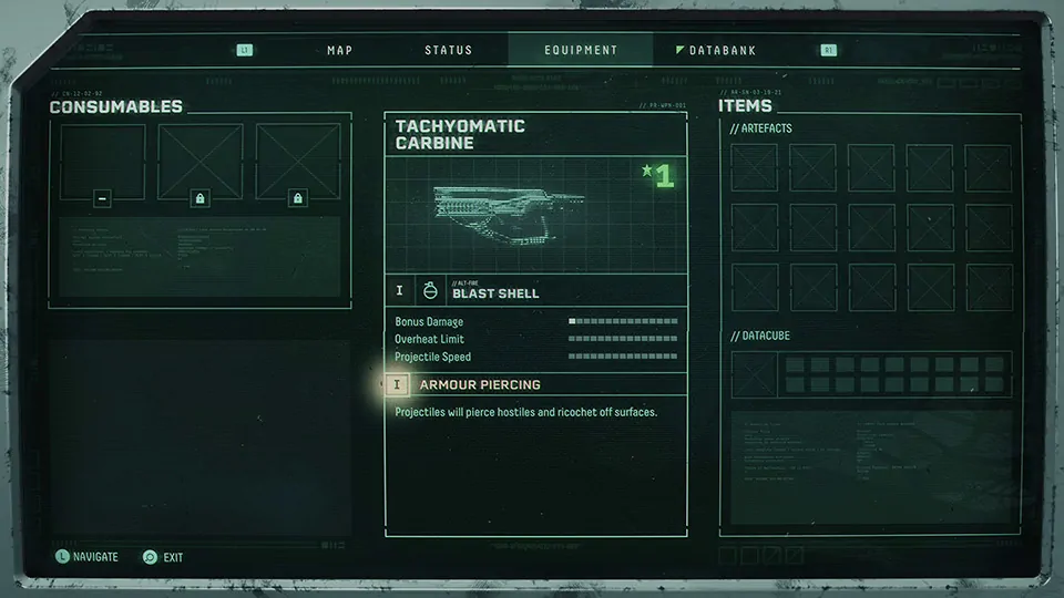 A játék körforgásába erősen kapcsolódnak a feloldható tárgyak is. Csak úgy, mint más roguelike játékban, a Returnalban sem tarthatod meg a megszerzett cuccokat, halálodkor azok elvesznek.